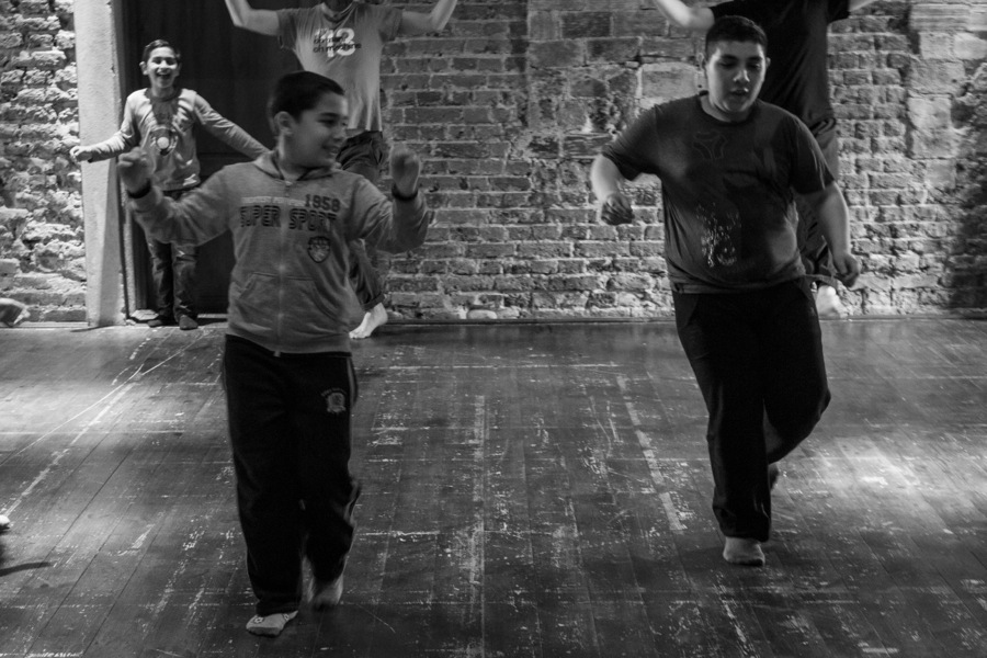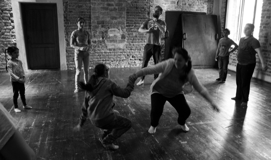 The artists of Jubilo worked with a multi-cultural group of children and teenagers of the local Roma community. The participants had an active input into the development of the workshop, sharing their creativity and ideas as well as transmitting elements of their culture. The workshop helped them discover their own strengths and skills, hidden talents and means of creative expression, and at the same time aimed to promote respect and understanding for cultural differences. Workshop participants together with the artists of Jubilo prepared a short “Shout of Joy” presentation for the closing event of Cyrkulacje Festiwal.