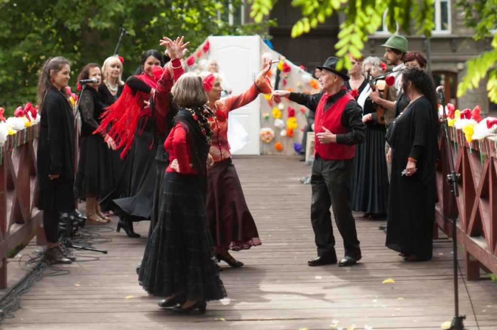 20 czerwca trzy roztańczone i rozśpiewana parady teatralne spotkały się przy Kładce Św. Antoniego w teatralnym zgromadzeniu, zapraszając po drodze poprzez muzykę i taniec wszystkich przechodniów do przyłączenia się. Uczestnicy zaprezentowali publiczności kolorowy spektakl pełen muzyki, tańca (flamenco, romskich oraz nowoczesnych), scen teatralnych i piosenek. Po spektaklu zaprosiliśmy wszystkich przechodniów i uczestników projektu do spędzenia wspólnego popołudnia z występami, muzyką i wspólną zabawą. Kładka św. Antoniego stała się przejściem ponad podziałami, wiekiem i pochodzeniem – miejscem spotkania i doświadczania wspólnoty.