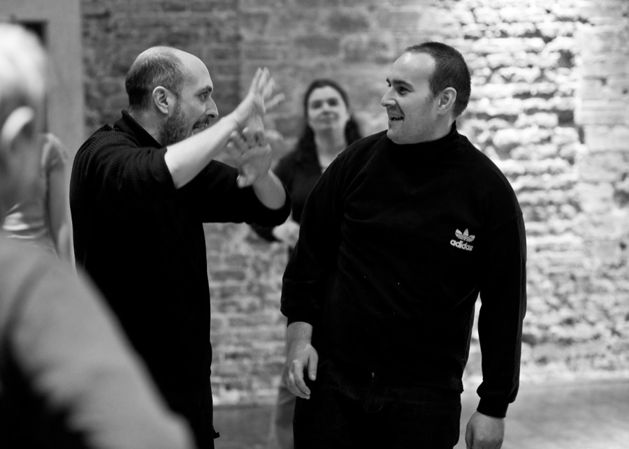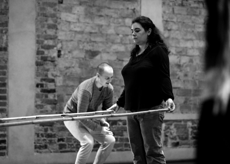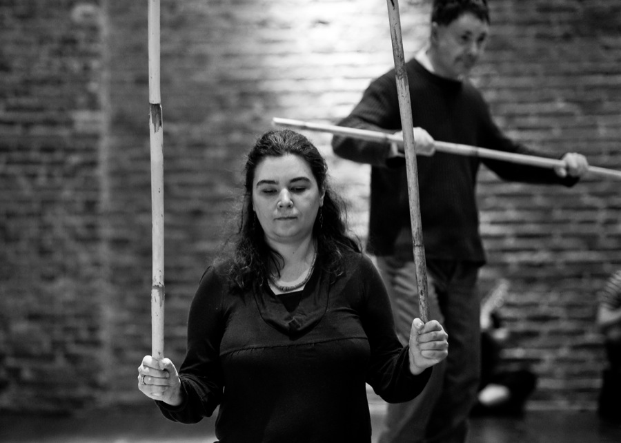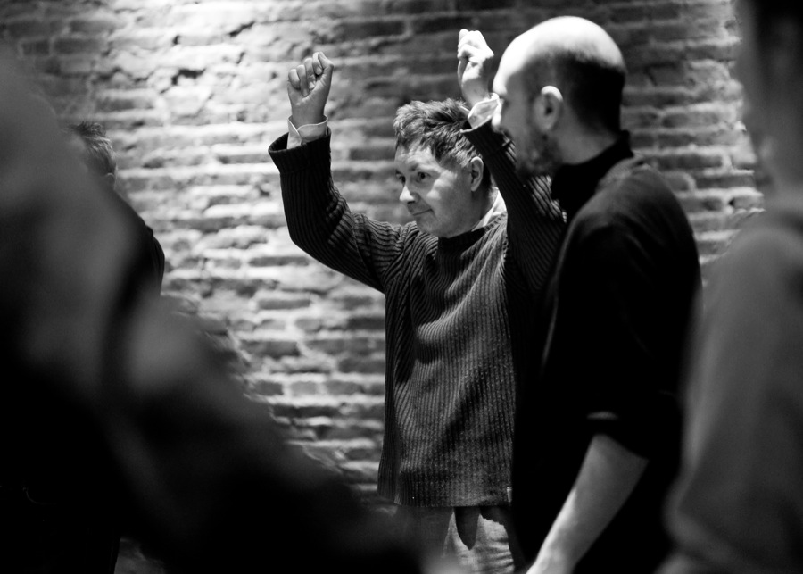 In May 2013, Jubilo initiated field sessions with Fundacja Opieka i Troska, working with adults who have had experiences of mental illness. The foundation offers workshops focusing on visual arts and crafts, yoga, computer training, and culinary skills. In addition, the foundation began a theatrical project with a select group of individuals, cooperating with various theatres from the Wroclaw area. During the spring 2013 session, “The Space Between,” as part of the BodyConstitution program, Jubilo introduced the group to the language of physical and musical training developed from its experiences with its past field groups and coming from the material developed during the laboratory research in The Grotowski Institute.