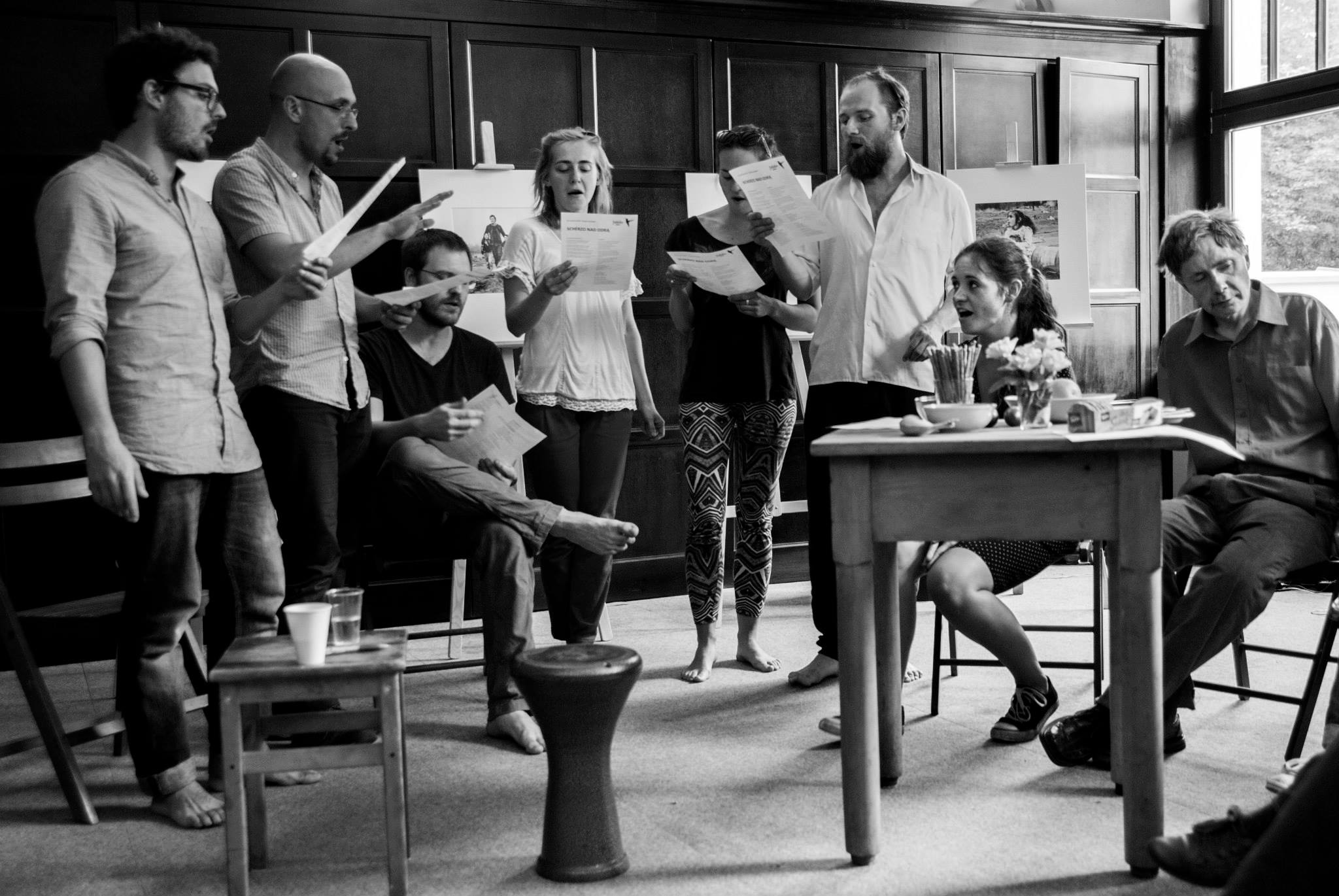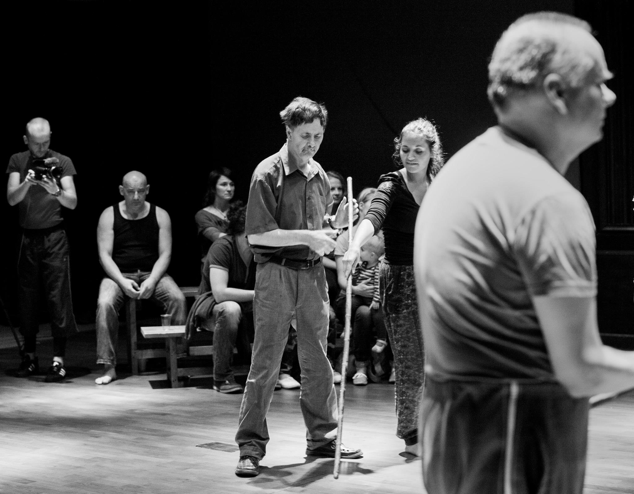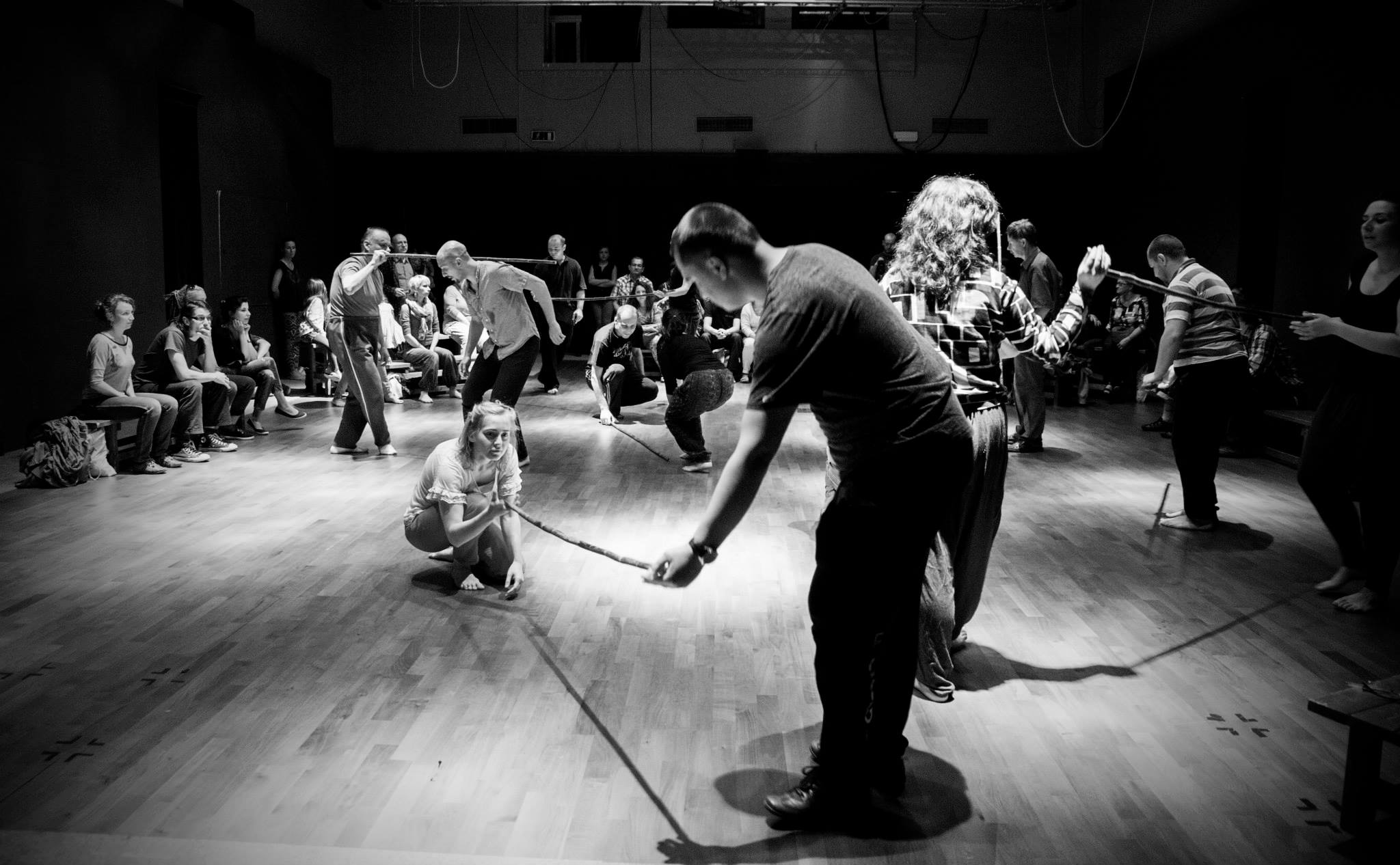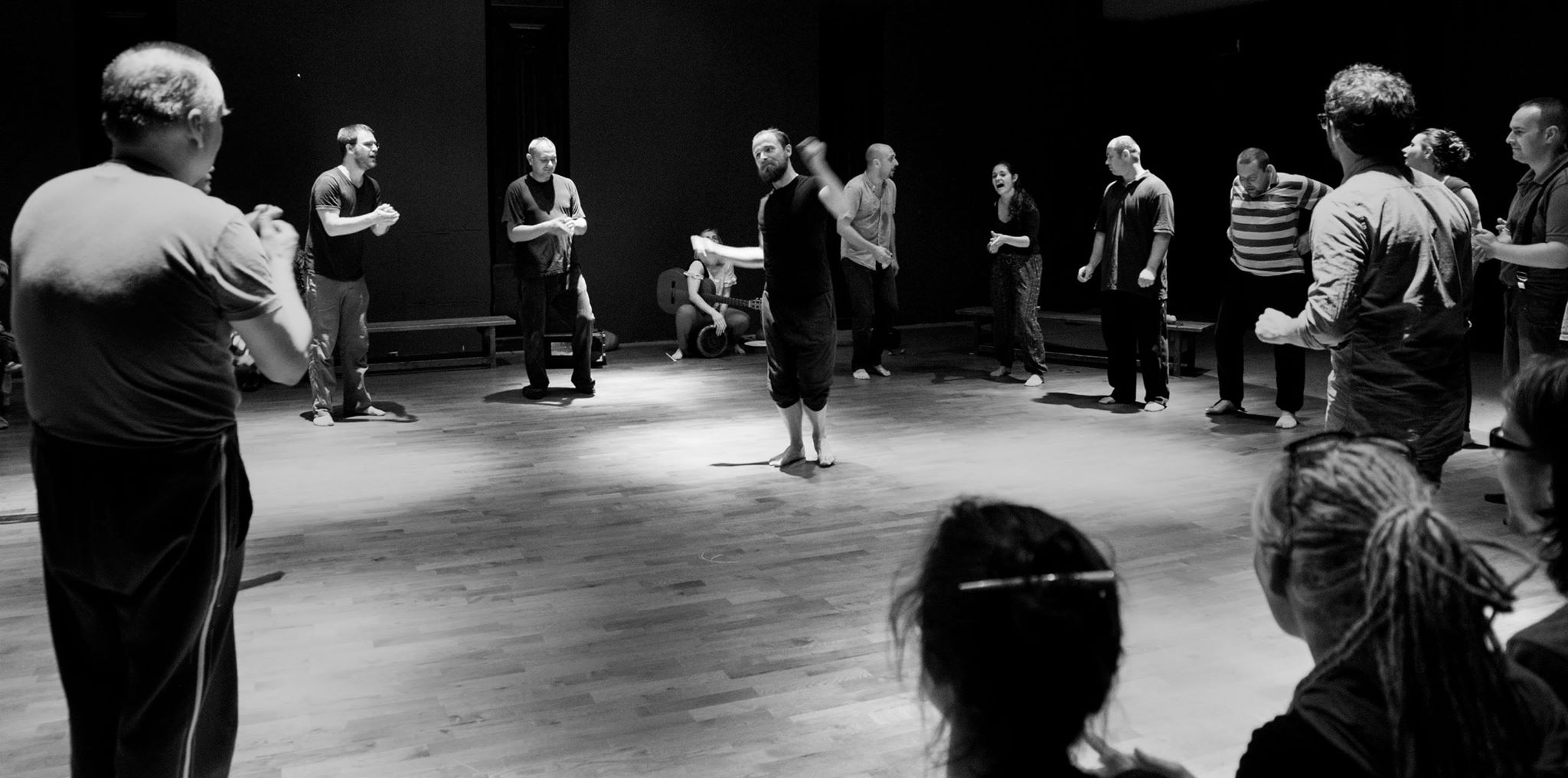 The focus groups of these encounters are peoples who have been excluded from, or have limited means of contact with the cultural and social activities of the community. This includes but is not limited to mentally and physically disabled people, ethnic/racial minorities, the homeless, prisoners, juvenile delinquents, and substance abusers. The encounters are realized through a series of long-term workshops, which are focused on artistic exchange through the theatrical languages of movement, voice, and music. These workshops are led by the core artistic team of actors coming from Italy, Poland, Canada, Spain, Greece, and USA, with support from field workers and therapists from collaborating associations. Since March 2013, Jubilo is part of the Body Constitution program hosted and supported by The Grotowski Institute of Wroclaw.