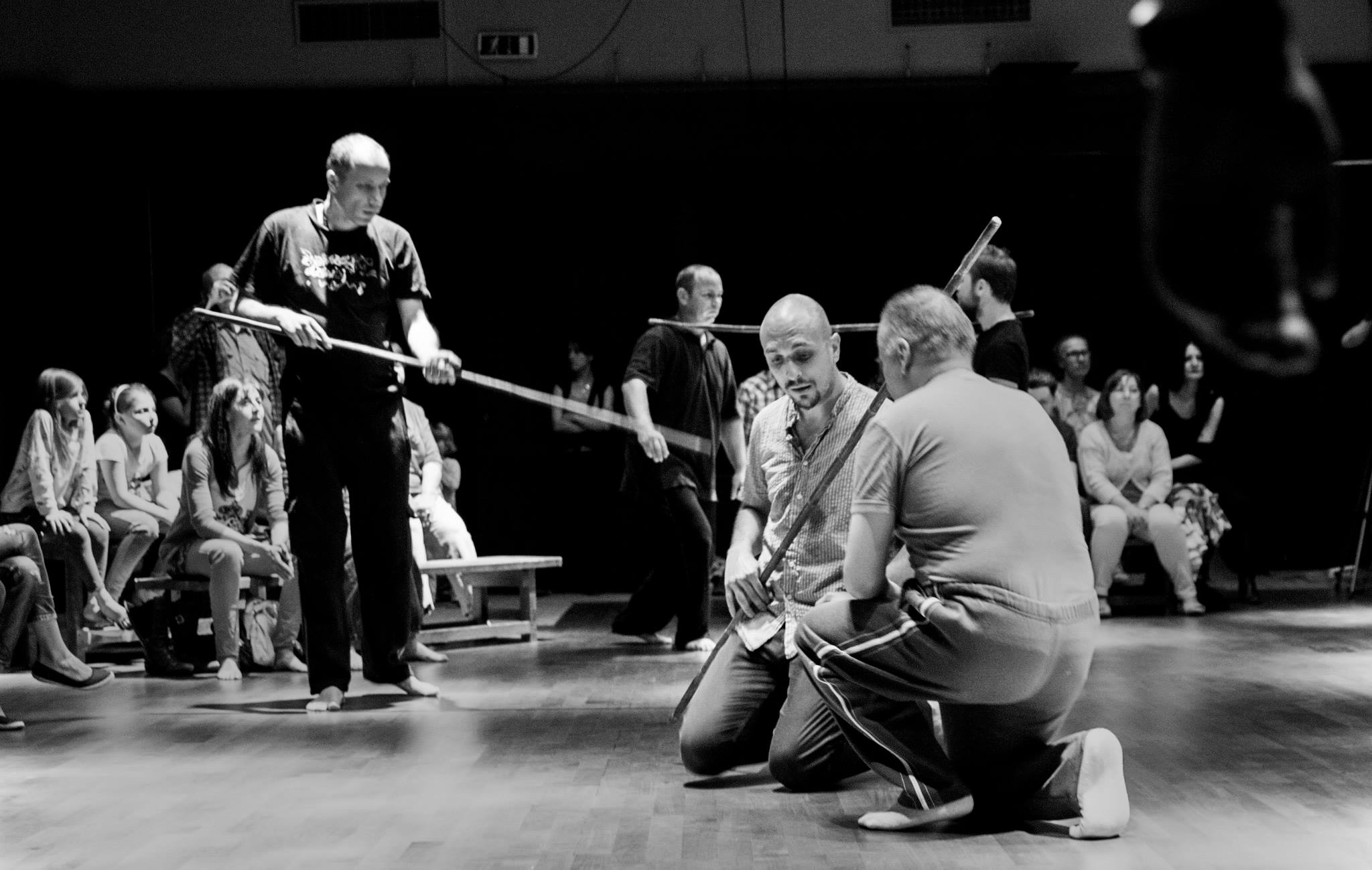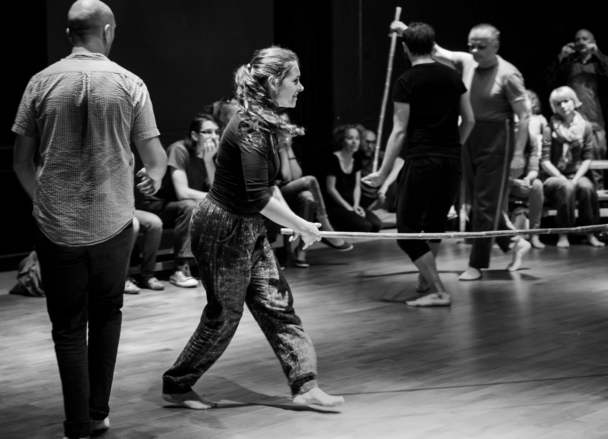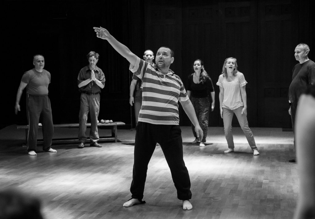The focus groups of these encounters are peoples who have been excluded from, or have limited means of contact with the cultural and social activities of the community. This includes but is not limited to mentally and physically disabled people, ethnic/racial minorities, the homeless, prisoners, juvenile delinquents, and substance abusers. The encounters are realized through a series of long-term workshops, which are focused on artistic exchange through the theatrical languages of movement, voice, and music. These workshops are led by the core artistic team of actors coming from Italy, Poland, Canada, Spain, Greece, and USA, with support from field workers and therapists from collaborating associations. Since March 2013, Jubilo is part of the Body Constitution program hosted and supported by The Grotowski Institute of Wroclaw.