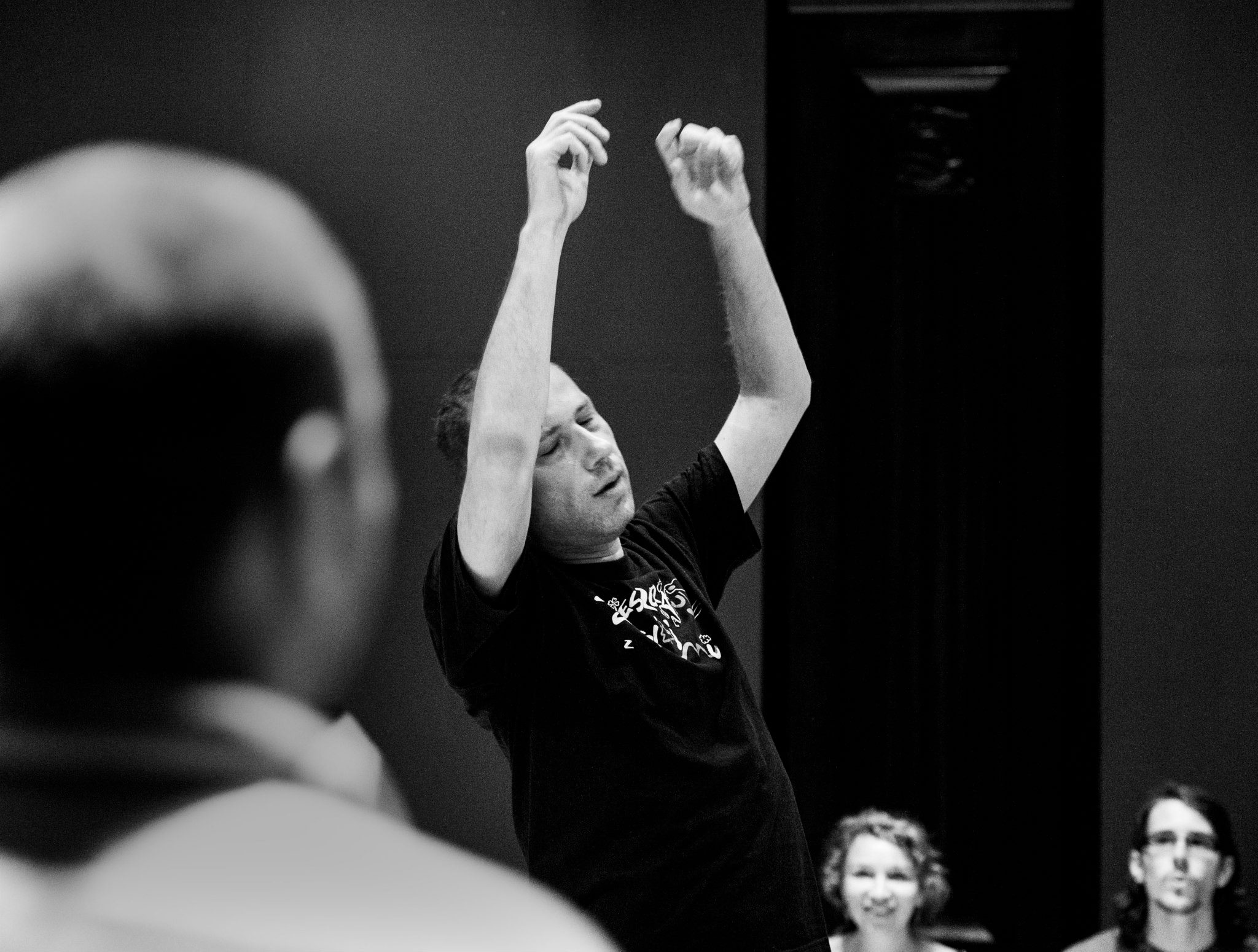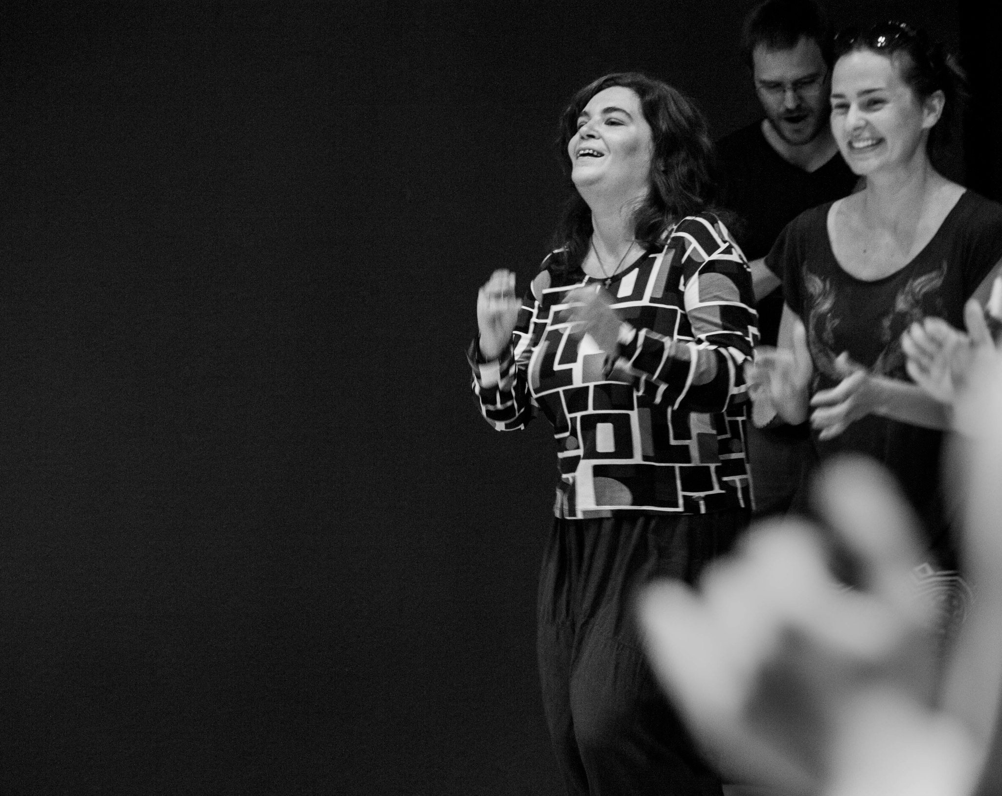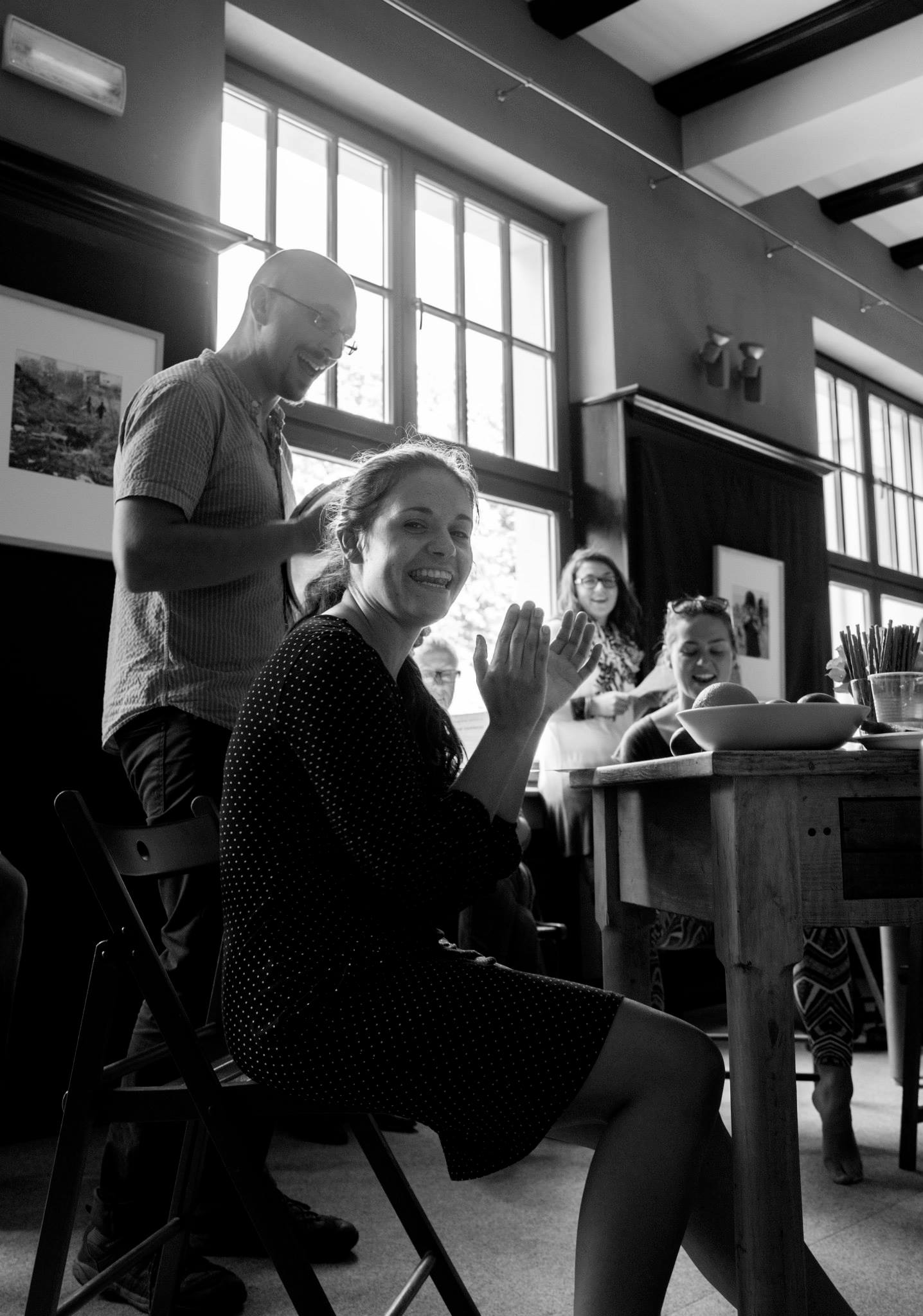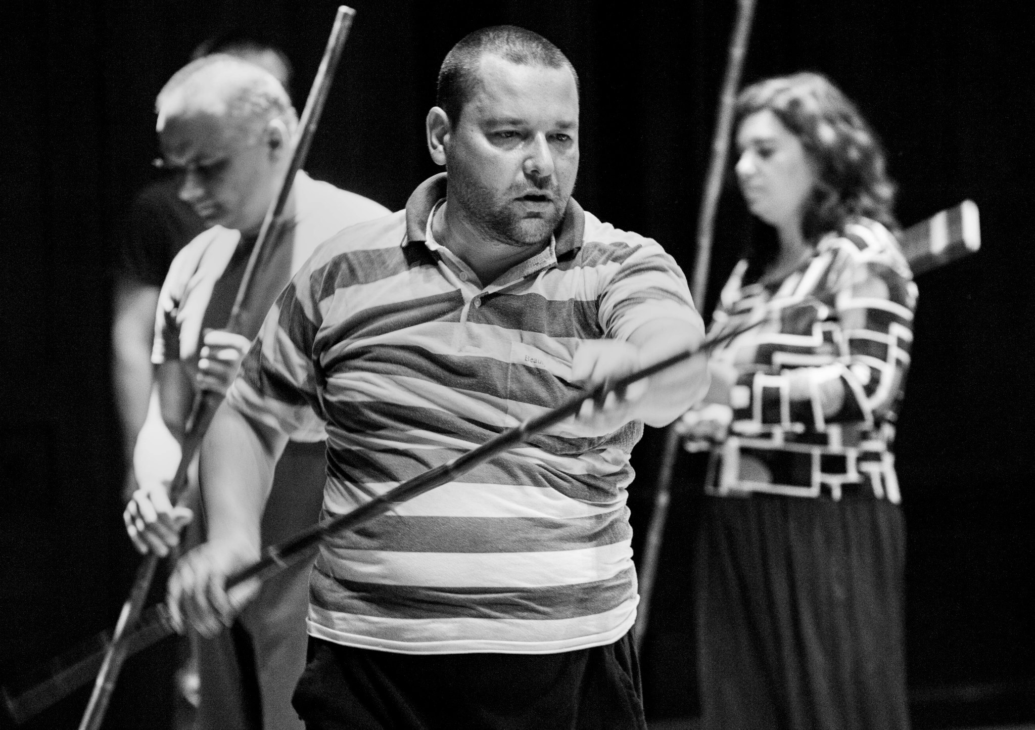 The focus groups of these encounters are peoples who have been excluded from, or have limited means of contact with the cultural and social activities of the community. This includes but is not limited to mentally and physically disabled people, ethnic/racial minorities, the homeless, prisoners, juvenile delinquents, and substance abusers. The encounters are realized through a series of long-term workshops, which are focused on artistic exchange through the theatrical languages of movement, voice, and music. These workshops are led by the core artistic team of actors coming from Italy, Poland, Canada, Spain, Greece, and USA, with support from field workers and therapists from collaborating associations. Since March 2013, Jubilo is part of the Body Constitution program hosted and supported by The Grotowski Institute of Wroclaw.