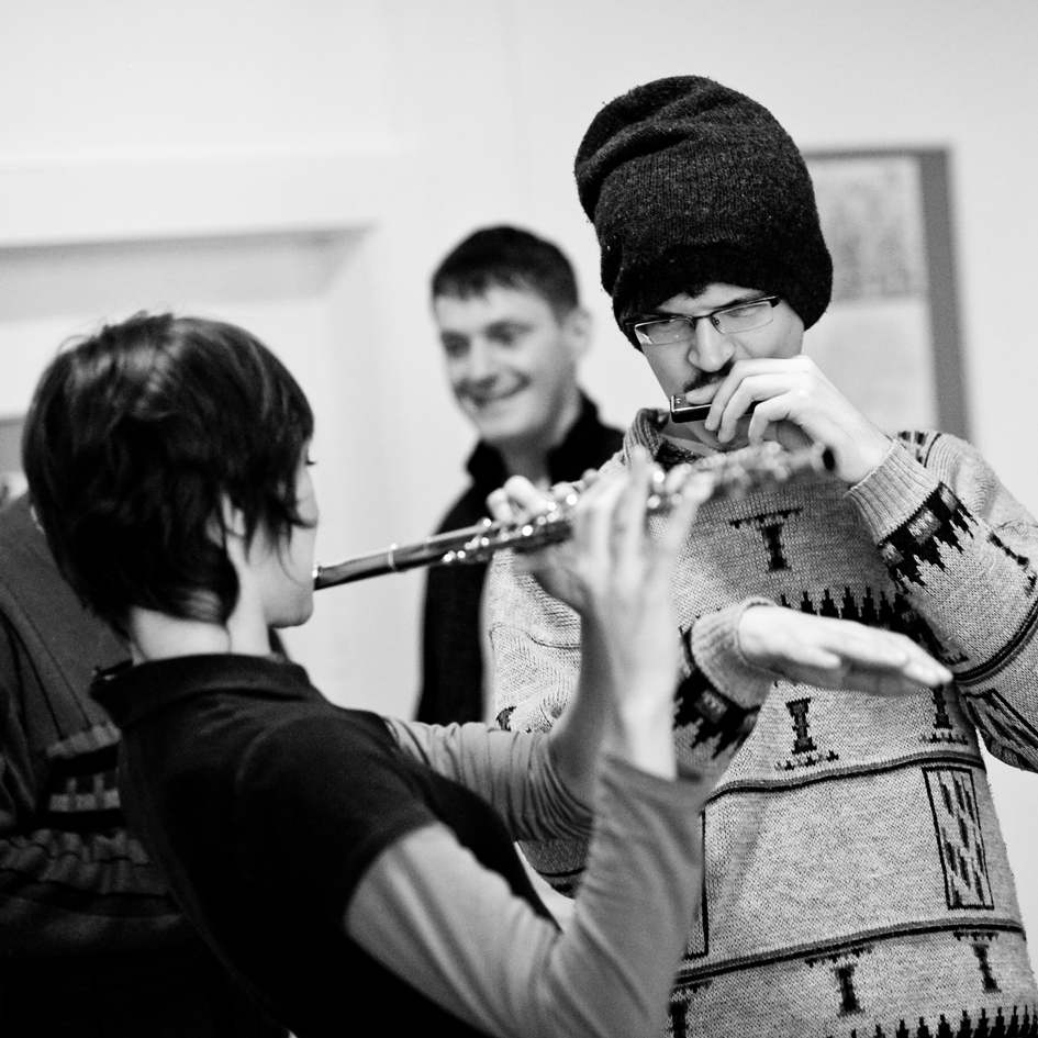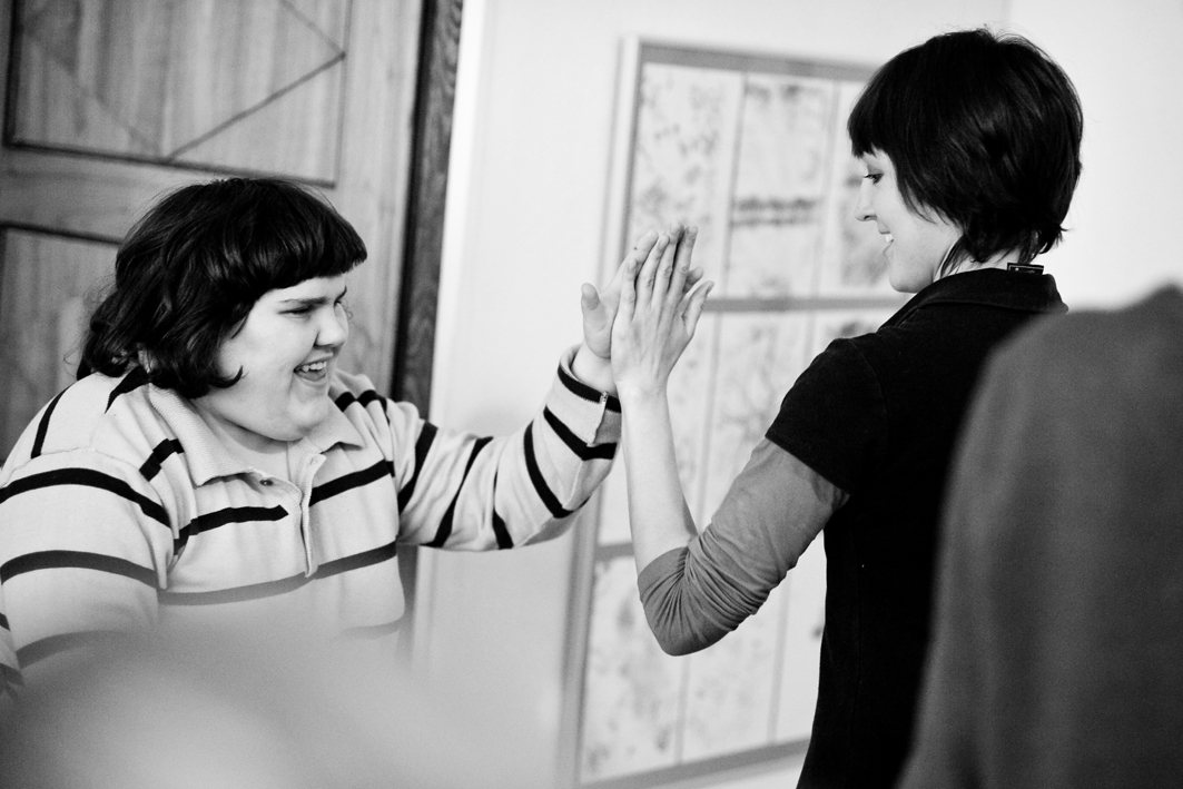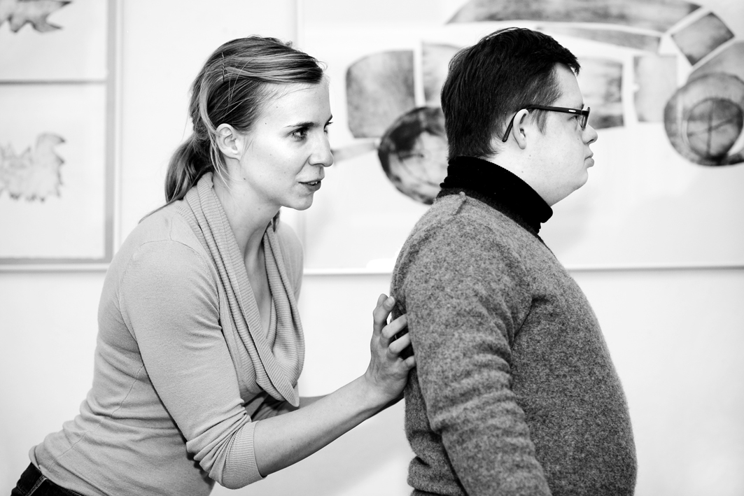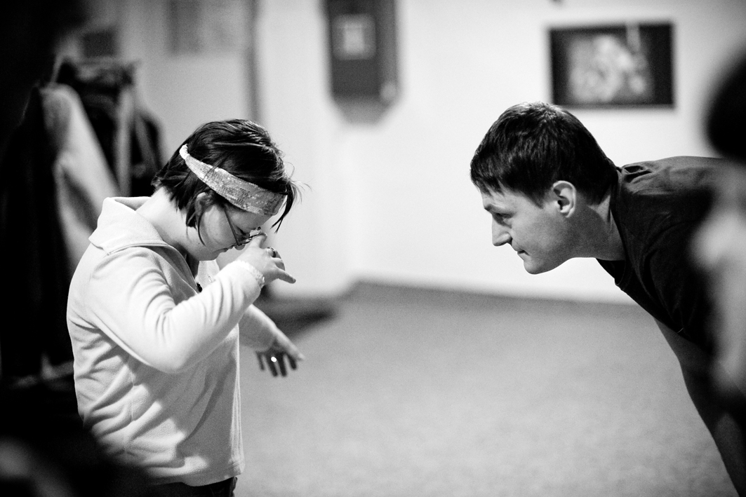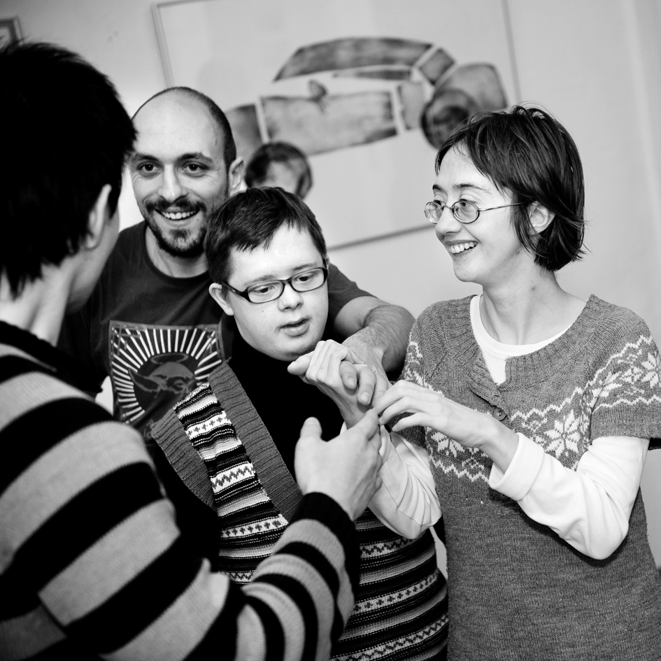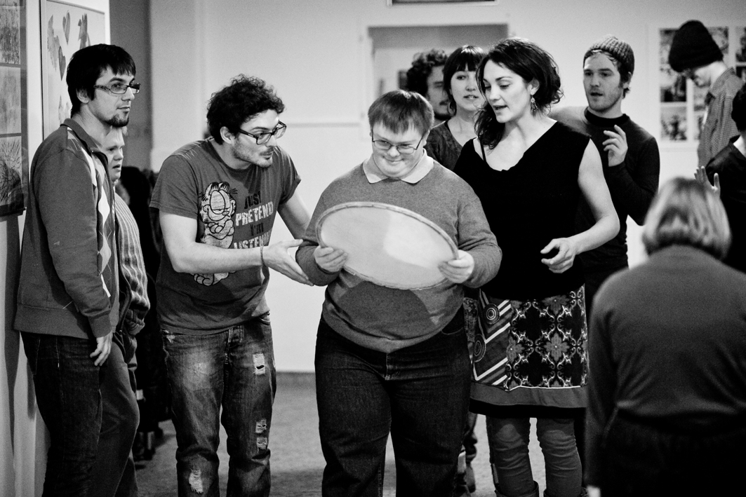 In November 2011, Jubilo began a series of pilot workshop sessions in collaboration with Stowarzyszenie Świat Nadziei (The World of Hope Association) and a group of adults with various mental and developmental disabilities. The workshops were conducted 1-2 times weekly from November 2011 – May 2012 in the ArtBrut Gallery in Wrocław. The specific aim of the project was to work in coordination with the therapists in care of the adults and to develop a long-term process of creative exploration of the body and voice. The creative practices that the artistic leaders drew upon included a modified version of Ashtanga yoga, movement and dance, partner exercises, music, rhythms, and sounding/harmonizing. Throughout the project, special emphasis was placed on the exploration of the ensemble, specifically how the group can unite to support one another and provide a safe platform for each individual to express their own artistic voice.